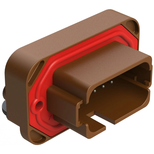 18 Positions, Right Angle, Flange Mount, PCB Receptacle, Tin Plated Contacts Included, Keyed D, Brown.