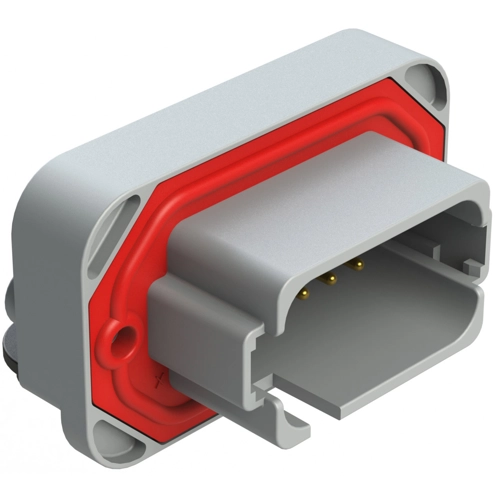 18 Positions, Right Angle, Flange Mount, PCB Receptacle, Gold Plated Contacts Included, Keyed E, Grey.