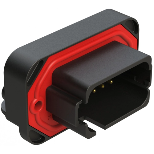 18 Positions, Right Angle, Flange Mount, PCB Receptacle, Gold Plated Contacts Included, Potted, Keyed E, Black.