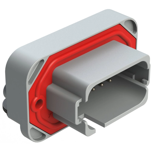 18 Positions, Right Angle, Flange Mount, PCB Receptacle, Tin Plated Contacts Included, Potted, Keyed E, Grey.