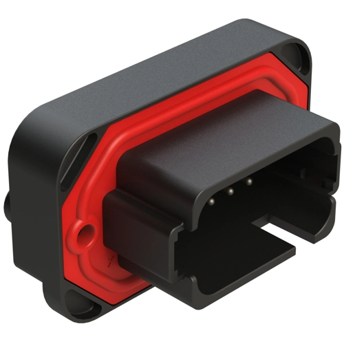 18 Positions, Flange Mount, PCB Receptacle, Tin Plated Contacts Included, Potted, Keyed A, Black.