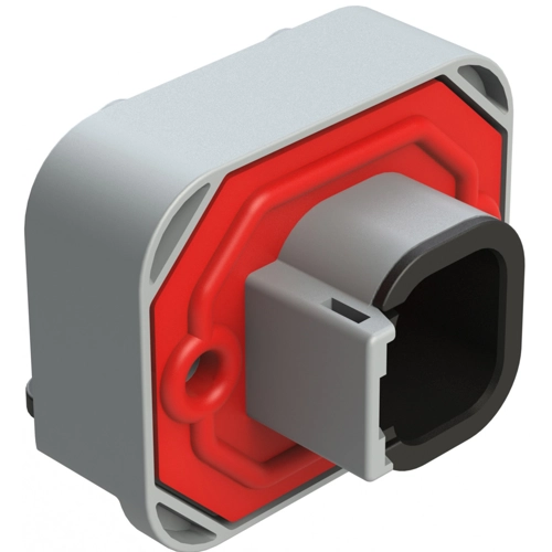 4 Positions, Right Angle, Flange Mount, PCB Receptacle, Grey, Gold Plated Contacts Included.