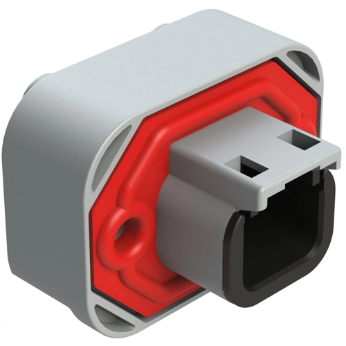 2 Positions, Flange Mount, PCB Receptacle, Potted, Grey, Gold Plated Contacts Included.