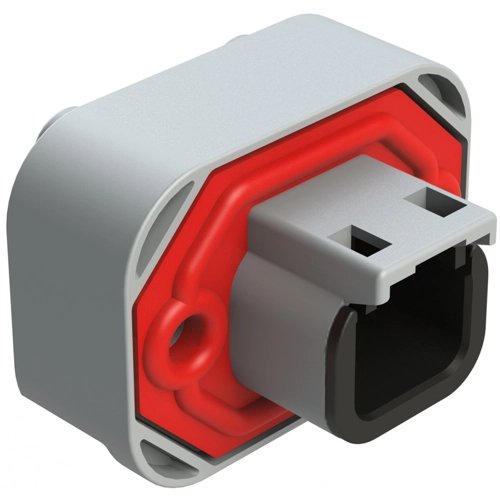 2 Positions, Flange Mount, PCB Receptacle, Potted, Grey, Tin Plated Contacts Included.