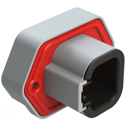 4 Positions, PCB Receptacle with flange, Pin, Tin Plated, Self-threading, Gasket, Keyed A, Grey.