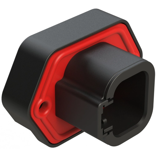 4 Positions, PCB Receptacle with flange, Pin, Tin Plated, Self-threading, Gasket, Keyed B, Black.