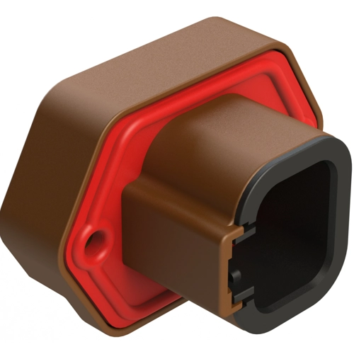 4 Positions, PCB Receptacle with flange, Pin, Gold Plated, Self-threading, Gasket, Potted, Keyed D, Brown.