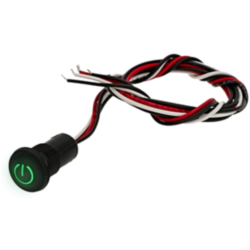 Pushbutton NO , Illuminated Power Symbol ( Green) , 24 AWG wires , Silver , Black actuator