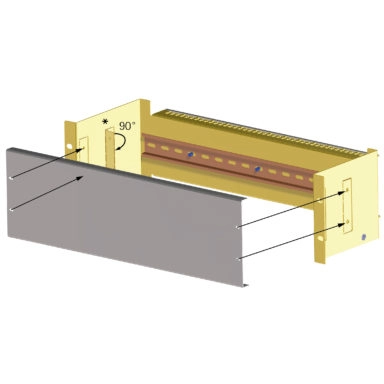 This support rail is used for a recessed mounting of top hat rail enclosures at 19“ levels of cabinets, racks or enclosures