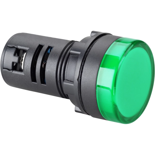 LED signal lamp, recess diameter 22 mm, IP65 front side, cover: 29 mm, AC/DC, green, 24 V.