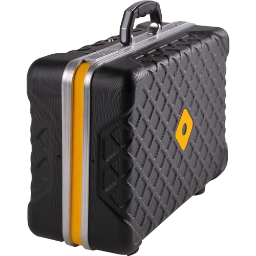 With 75 special tools. Case description: X-ABS plastic shells with structured surface for high stability and extremely slip- and scratch-proof lamination, stable aluminum frame, snap-action hinges with lid lock, resistant to environmental conditions. The tools are arranged in the pockets of 2 removable panels or in a base tray with removable partition panels. With document compartment in the case lid. Content: 1 mechanic's mirror, 1 desoldering lever, 1 tin knife, 1 tin scraper, 1 spring hook, 1 magnetic rod with double joint, 2 test probes, 1 IC tweezer, 1 Slimline diagonal cutter, 1 diagonal cutter, 1 of each round/flat nose/snipe nose pliers, 1 water pump pliers, 1 combination pliers, 1 mechanic's pliers, 1 electronics stripping tool, 3 screwdrivers, 2 crosstip screwdrivers, voltage tester, angled screwdriver, 1 watchmaker's screwdriver with 4 replaceable blades, 1 screw-holding screwdriver, 3 VDE screwdriver, 2 VDE crosstip screwdrivers, 5 tweezers, 1 clamping shears, 1 x 6-piece set of needle files, 1 special sheet metal shears, 1 cable knife, 1 set of socket wrenches 7-piece, 1 set of open end wrenches 6-piece, 1 set of hexagon stud drivers 8-piece, 1 dust brush, 1 oiler, 1 steel ruler, 1 digital caliper, Puk pocket saw with folding handle.