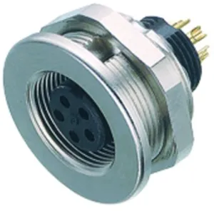 With screw lock and solder terminals for simple assembly; Female contacts: copper tin. Male contacts:copper zinc. Contact finish: gold-plated. Wiring cross-section: max. 0.25 mm², Contact carrier:male/female: PBT/PA 66 to UL 94 V-0. Cable housing: PA 66 to UL 94 HB. Flanged housing: copper zinc.Cable outlet: 3.5 to 5.0 mm. Degree of protection housing: (IEC 60529): IP 67. Degree of soiling: 1. Rated voltage: 125 VAC. Test surge voltage: 1750 VAC. Rated current: (at 40 °C): 4.0 A. Contact resistance:max. 3.0 mohm. Insulation resistance: at least 10 Gohm. Mechanical useful life: at least 500 insertion cycles. Operating temperatures: - 40 to +85 °C.