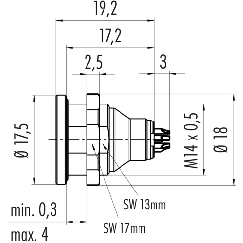 Panel socket, 8 pole, solder connection, push pull, straight, 09 4932 025 08