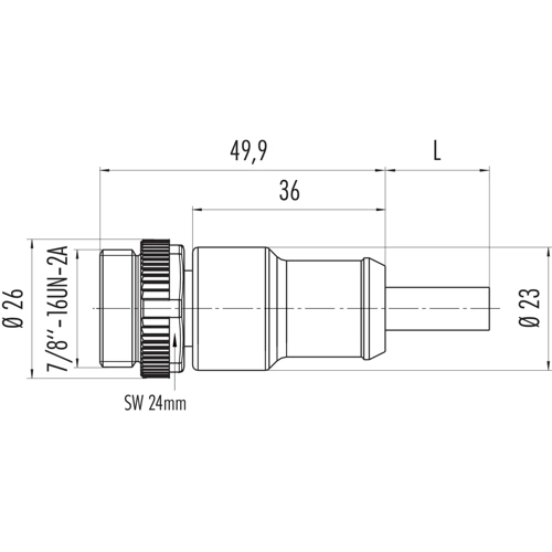 7/8" Male cable connector, Contacts: 3, unshielded, moulded on the cable, IP68, UL, PUR, black, 3 x 1.50 mm², 5 m.