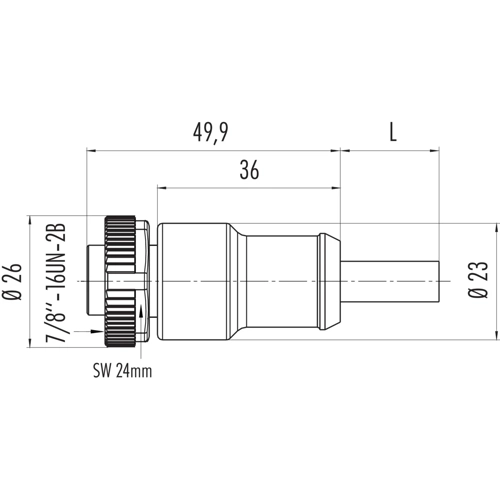 7/8" Female cable connector, Contacts: 3, unshielded, moulded on the cable, IP68, UL, PUR, black, 3 x 1.50 mm², 5 m.
