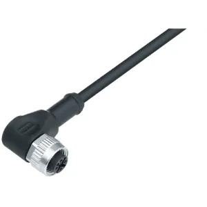 M12-A Female angled connector, Contacts: 4, unshielded, moulded on the cable, IP68, UL, PUR, black, 4 x 0.34 mm², for welding applications, 2 m.