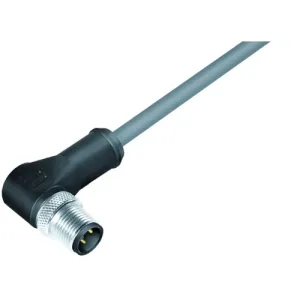 M12-A Male angled connector, Contacts: 5, shielded, moulded on the cable, IP67, UL, PVC, grey, 5 x 0.25 mm², 2 m.