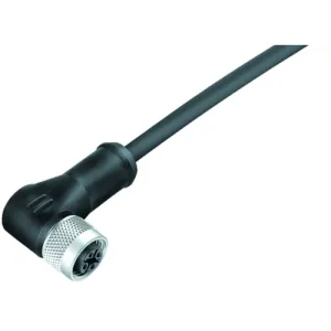 M12-A Female angled connector, Contacts: 3, shielded, moulded on the cable, IP67, UL, PUR, black, 3 x 0.34 mm², 5 m.