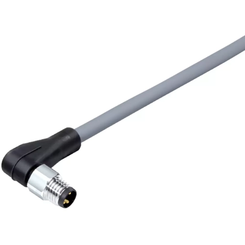 M8 Male angled connector, Contacts: 8, unshielded, moulded on the cable, IP67, UL, PVC, grey, 8 x 0.25 mm², stainless steel, 5 m.