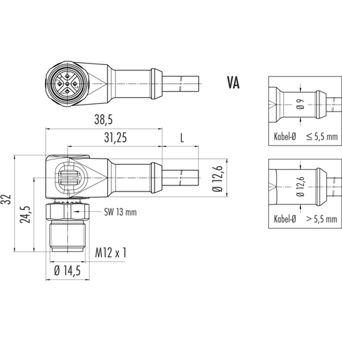 | Connection (1) | M12-cable plug, angled | |