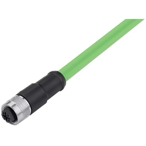 M12-D Female cable connector, Contacts: 4, shielded, moulded on the cable, IP67, UL, Profinet, PUR, 4 x AWG 22, 5 m.