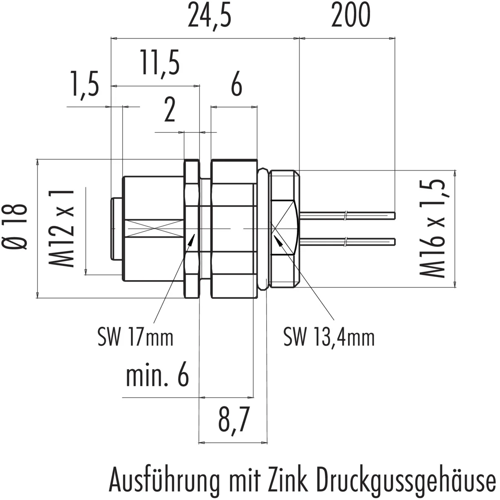 M12-A Female panel mount connector, Contacts: 4, unshielded, single wires, IP68/IP69K, UL, M16x1.5.