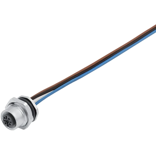 M12-A Female panel mount connector, Contacts: 12, unshielded, single wires, IP68/IP69K, UL, PG 9, front fastened, stainless steel.