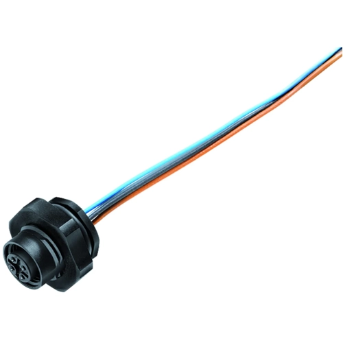 M12-A Female panel mount connector, Contacts: 5, unshielded, single wires, IP67, UL, PG 9, front fastened.