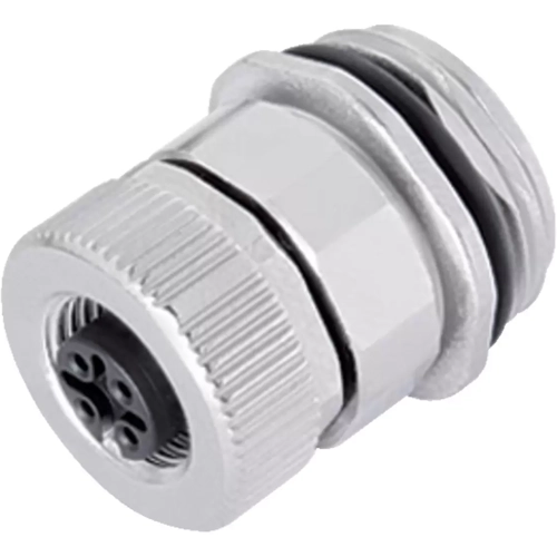 M12-A Female panel mount connector, Contacts: 5, unshielded, screw clamp, IP67, UL, VDE, M20x1.5.