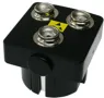 For easy ESD ground connection via German Schuko-style outlet or other ground connections, each with integrated 1.0 Mohm protective resistor; Note: the snap-on terminal mates the snap fastener.
