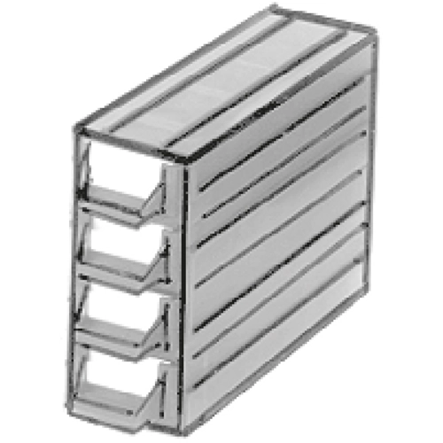 Made of electrically conductive polypropylene (Luvocom), impact-resistant, black, surface resistance compliant with DIN 53482 10^4 ohm. Consists of drawer compartments and drawers, respectively in four sizes. With interlock, depending on the arrangement (top, bottom or side-by-side). The drawers are equipped with label holders; Shipment: complete cabinet with compartment and respective specified number of drawers.