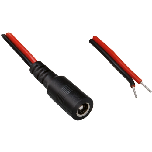 low power cable with socket to stripped ends, low power socket 2,1x5,5mm, 2x0,40mm², black/red, 1,0m, tinned ends