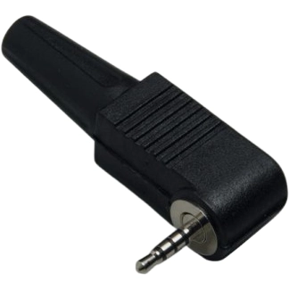 Angled audio plug, 3,5 mm, 4-pin, anti-kink protection, plastic housing.