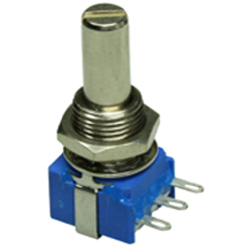 Conductive plastic potentiometers with solder tabs.