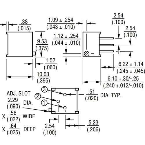 Cermet trimmer potentiometer, 25 turns, 5 kΩ, 0.5 W, THT, lateral, 3299P-1-502LF
