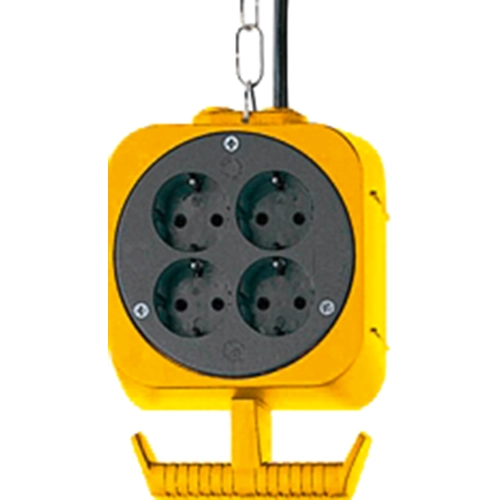 Adjustable to any working height, 4 Schuko-style outlets 230 V/16 A on each side, impact-resistant plastic case with large tool hook, 3.0 m solid and zinc plated steel chain and 5.0 m H05VV-F3G1.5 patch cord.