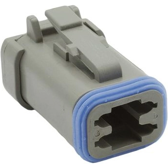 The 4 Contacts Male Standard Rectangular Grey Connector with Protective End Cap (PEC) Included, and is water and dustproof to IP68 when mated with a compatible connector.