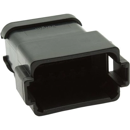 The 12 Contacts Female Standard Rectangular Black Connector with Protective End Cap (PEC) Included, and is water and dustproof to IP68 when mated with a compatible connector.