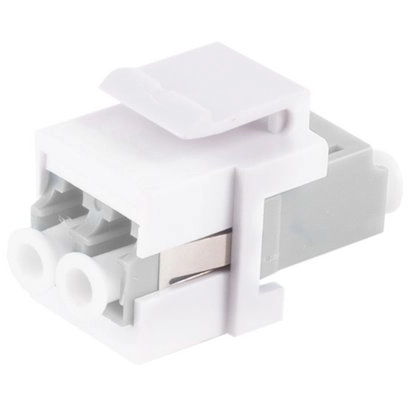 Fiber optical coupler for distribution boxes, patch panels, wall mounts or other applications. With the fiber optical coupler you can easily link two fiber optic patch cords. Without flange, with metal clip, keystone version. The dimensions of keystone modules all follow a standard so they can be mounted easily on suitable holders.