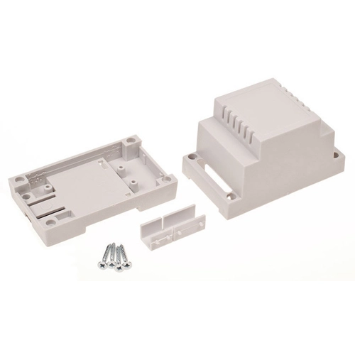 DIN rail housing made of ABS V0, light gray.
