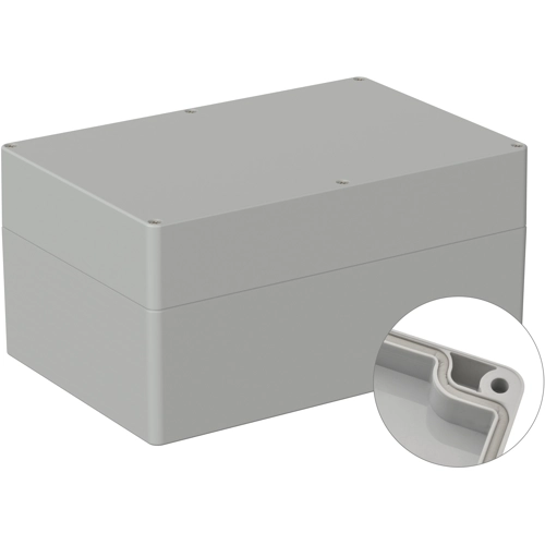 High-quality industrial enclosure made of polycarbonate. The enclosures are suitable for outdoor use, factory-fitted round cord seal. Cover screws are screwed into high-quality threaded bushings. No thread wear even after repeated opening. Circuit boards and mounting plates can be securely fastened in the lower section using screw domes. The cover screws, which are secured against falling out, are screwed into high-quality threaded bushings. The enclosure can be mounted on the wall using the screw channels in the lower section. Large machining surfaces and versatile mounting options for connectors, switches, and buttons.
