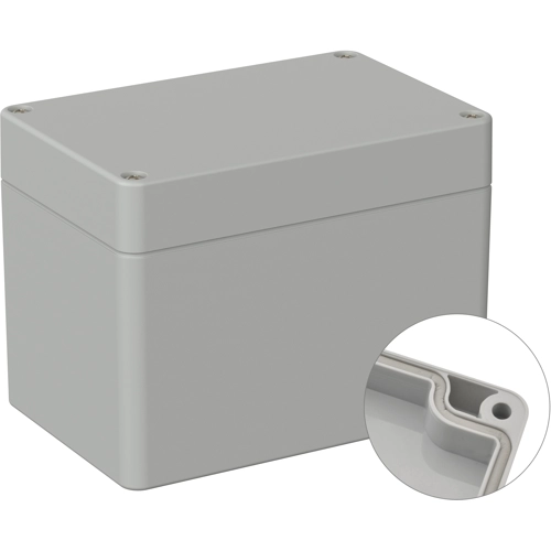 High-quality industrial housing made of ABS, factory-fitted round cord seal. Cover screws screwed into high-quality threaded bushings, no thread wear even after repeated opening. Circuit boards and mounting plates can be securely fastened in the lower section using screw domes. The cover screws, which are secured against falling out, are screwed into high-quality threaded bushings. The enclosure can be mounted on the wall using the screw channels in the lower section. Large machining surfaces and versatile mounting options for connectors, switches, and buttons.
