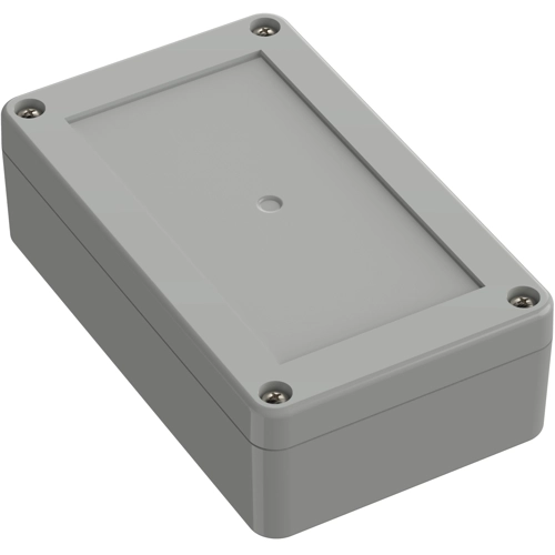 High-quality industrial housing made of ABS Recessed surface in the upper part for flush mounting of display screens and membrane keyboards. The cover screws, which are secured against falling out, are screwed into high-quality threaded bushings. Circuit boards can be securely fastened in the lower section using screw domes. Machining surfaces and versatile mounting options for connectors, switches, and buttons.