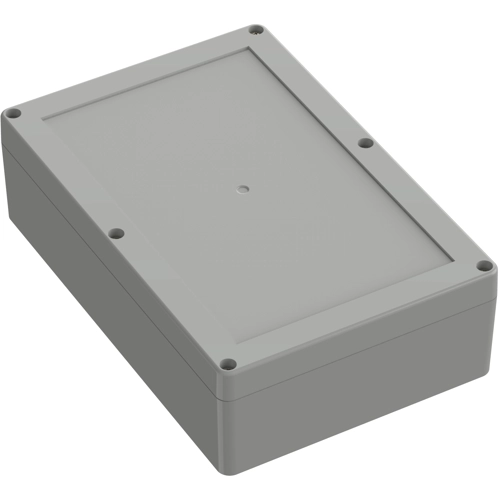 High-quality industrial housing made of ABS Recessed surface in the upper part for flush mounting of display screens and membrane keyboards. The cover screws, which are secured against falling out, are screwed into high-quality threaded bushings. Circuit boards can be securely fastened in the lower section using screw domes. Machining surfaces and versatile mounting options for connectors, switches, and buttons.