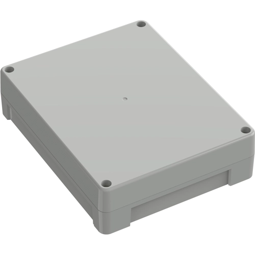 High-quality industrial enclosure made of polycarbonate. The cover screws, which are secured against falling out, are screwed into high-quality threaded bushings. Printed circuit boards can be securely fastened in the lower section using screw domes. Foam-filled high-quality seal (PU) Machining surfaces and versatile mounting options for connectors, switches, and buttons.