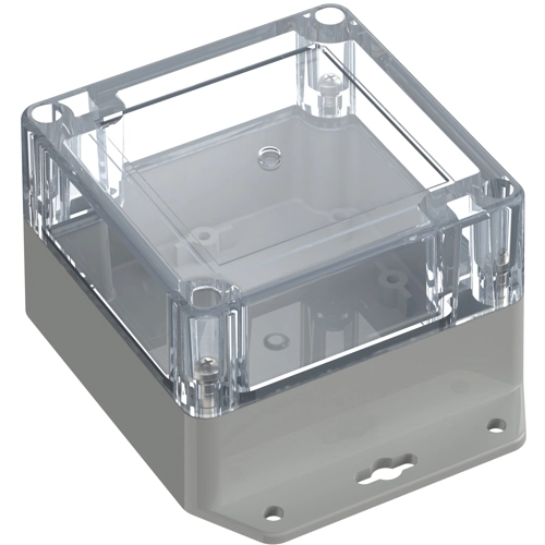 High-quality industrial housing made of polycarbonate. The housing is equipped with directly molded wall tabs. The cover screws, which are secured against falling out, are screwed into high-quality threaded bushings. Printed circuit boards can be securely fastened in the lower section using screw domes. Foam-filled high-quality seal (PU) Machining surfaces and versatile mounting options for connectors, switches, and buttons.