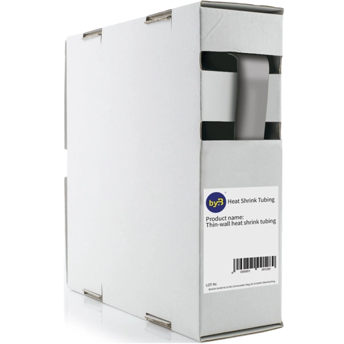 Heat-shrink thin-walled, without adhesive coating, flame-retardant and self-extinguishing. Supplied in a practical roll-off box for dust-free and tidy storage.