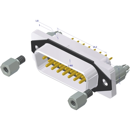 D-Sub Plug, IP67 SlimCon, 15-positions, Threaded rear spacer with clip, Threaded insert.