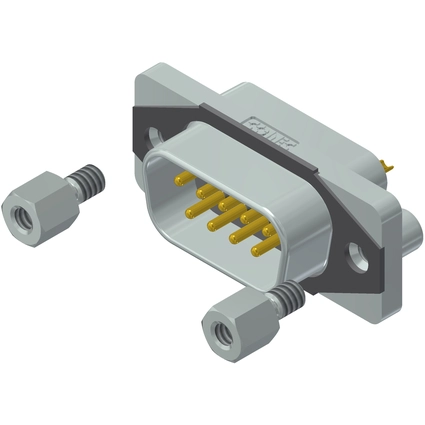 IP67 D-Sub SlimCon Filter male 9-positions solder cup with closed 4-40 UNC thread and hexlocking screw.