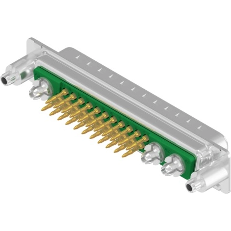 D-Sub Plug, Standard, Press-fit, Threaded rear spacer, 50 Ohm, Crimp / crimp angled.
